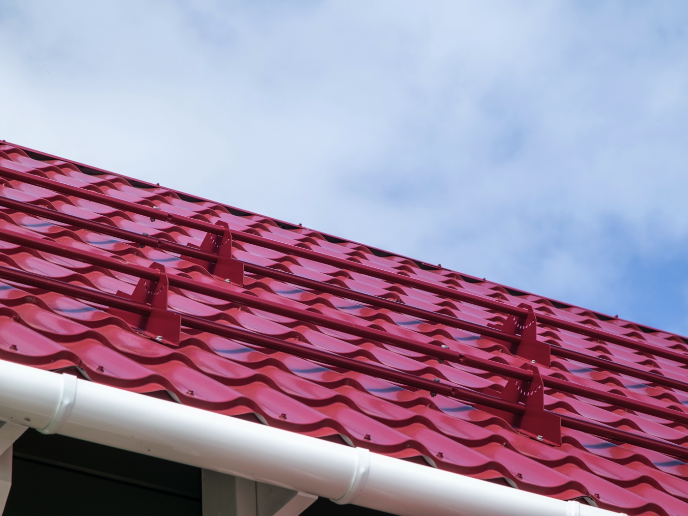 Металлочерепица с покрытием VikingMP® E в цвете RAL 3005 Красное вино представляет собой надежный кровельный материал от компании Металл-Профиль. Модель Супермонтеррей с толщиной 0,5 мм сочетает эстетику классической черепицы и прочность металла, идеально подходя для современных крыш. Это долговечное решение для защиты дома от непогоды, с матовой текстурой и насыщенным оттенком, имитирующим красное вино.