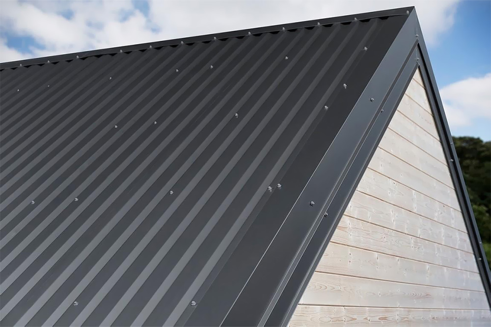 Листы легко режутся и крепятся саморезами. Рекомендуется для уклонов крыш не менее 10°. Идеален для быстровозводимых конструкций.